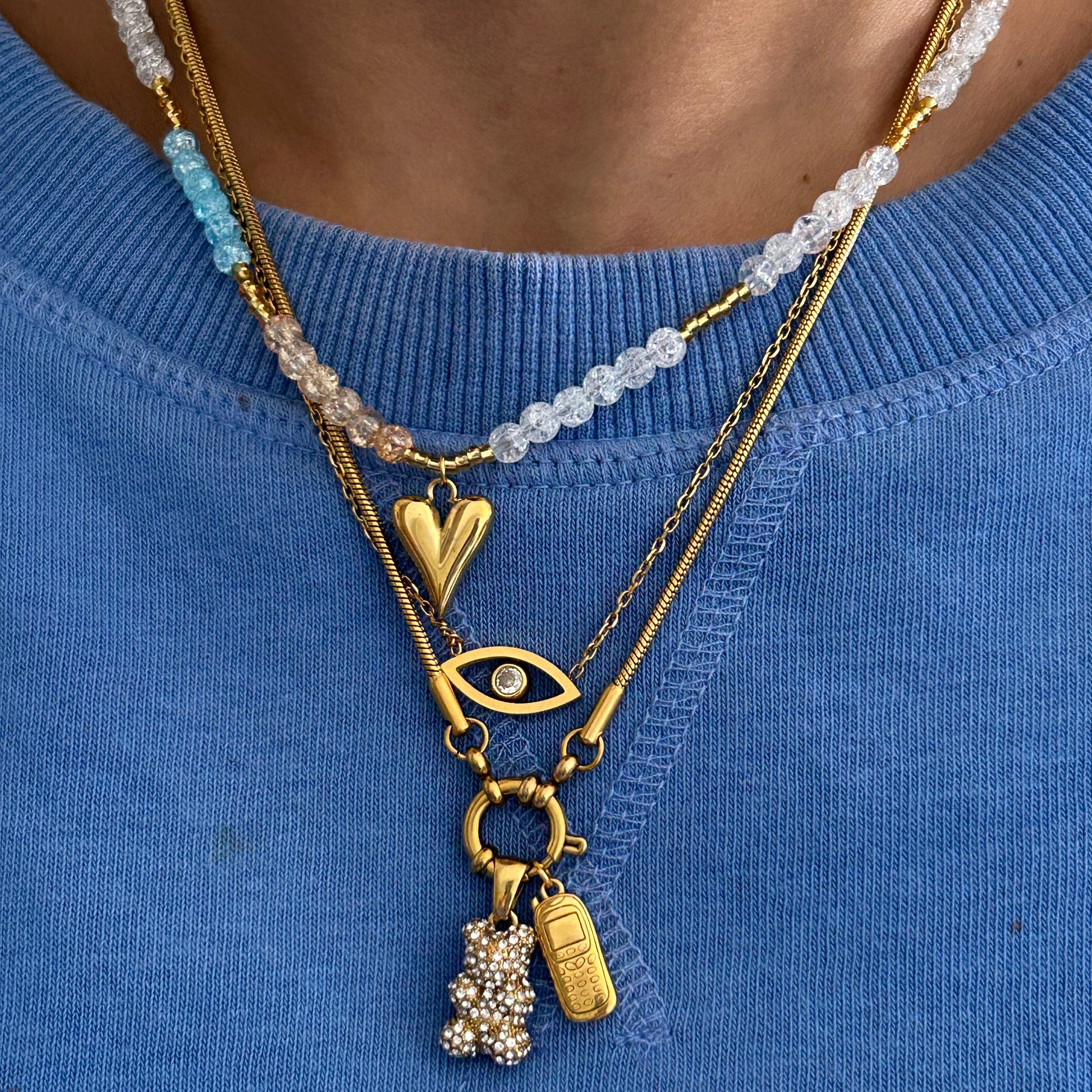A playful mix of charm and color — this necklace features soft blue beads paired with an elongated heart pendant for that perfect boho-luxe vibe. Light, breezy, and effortlessly stylish, it’s the piece you’ll reach for to add a touch of laid-back elegance to any outfit.