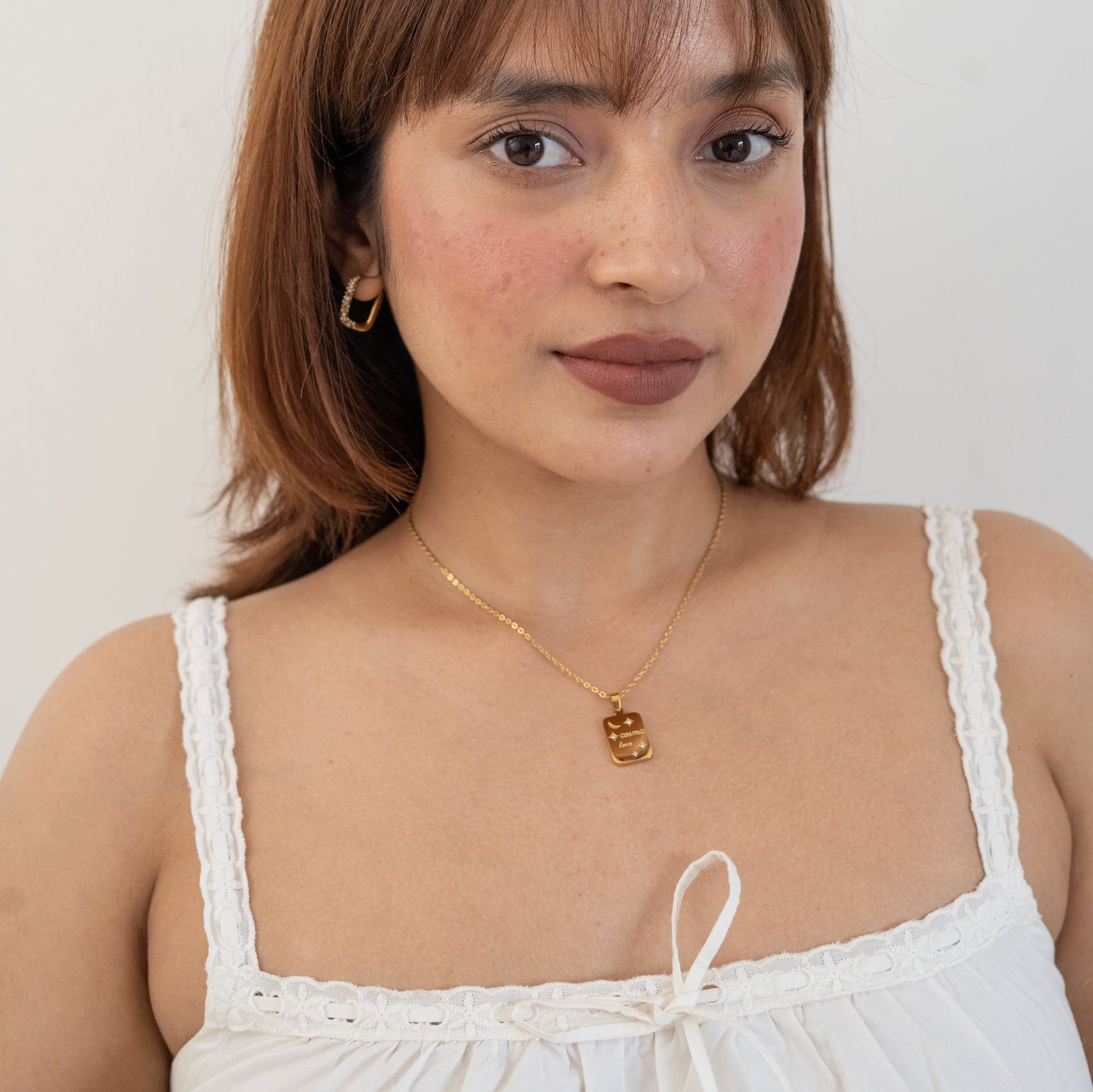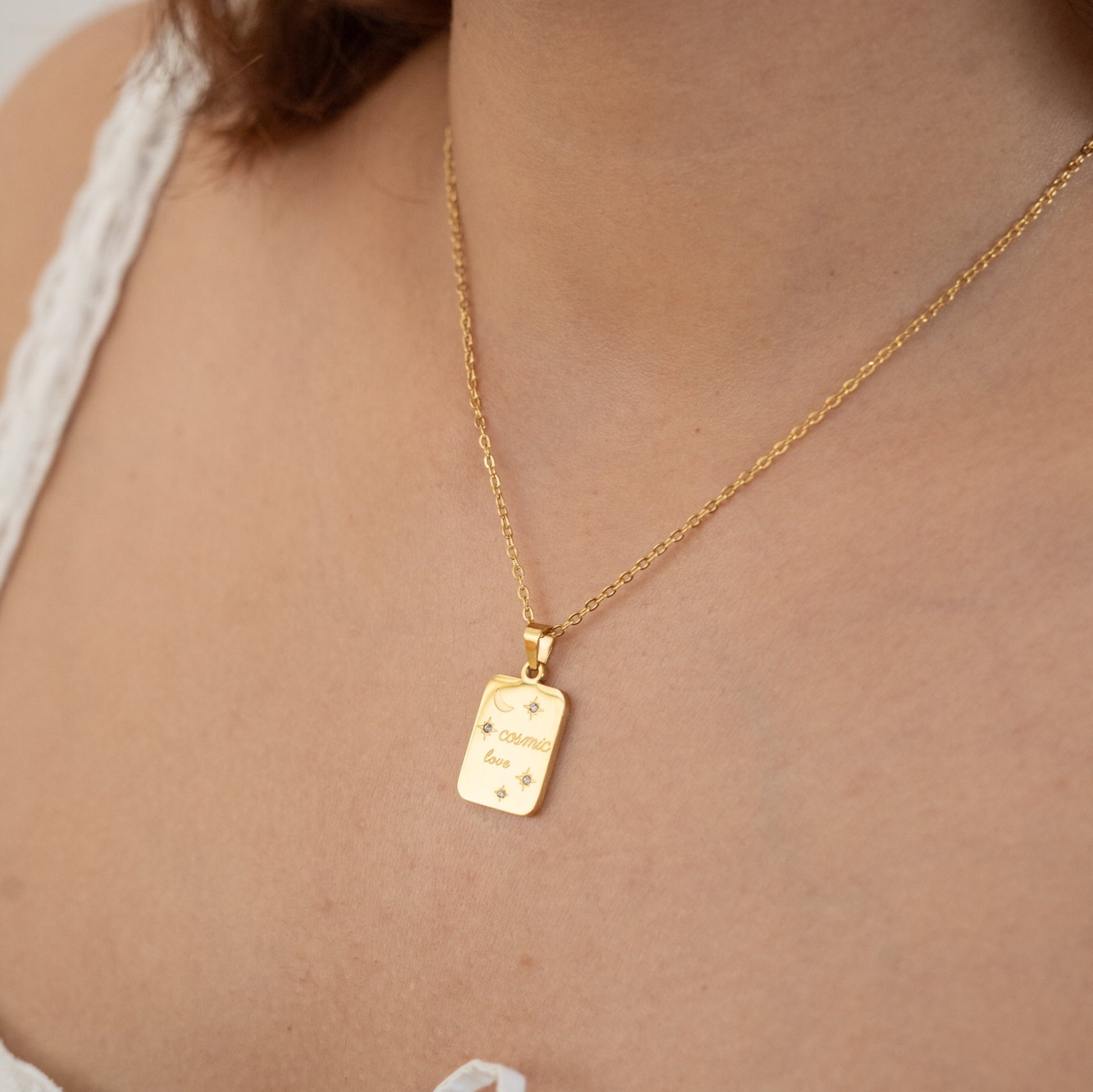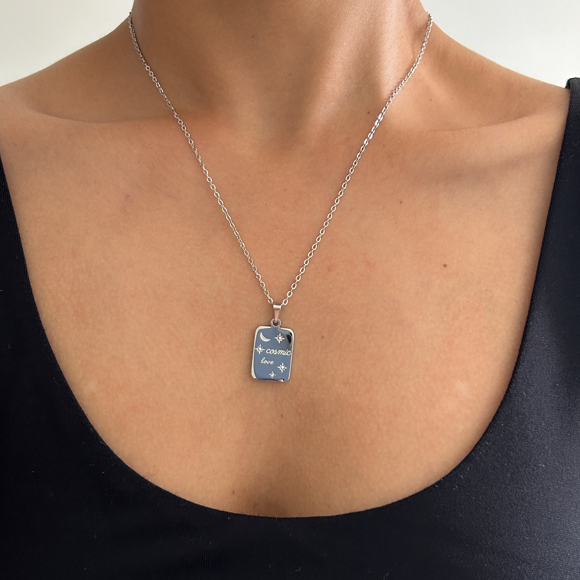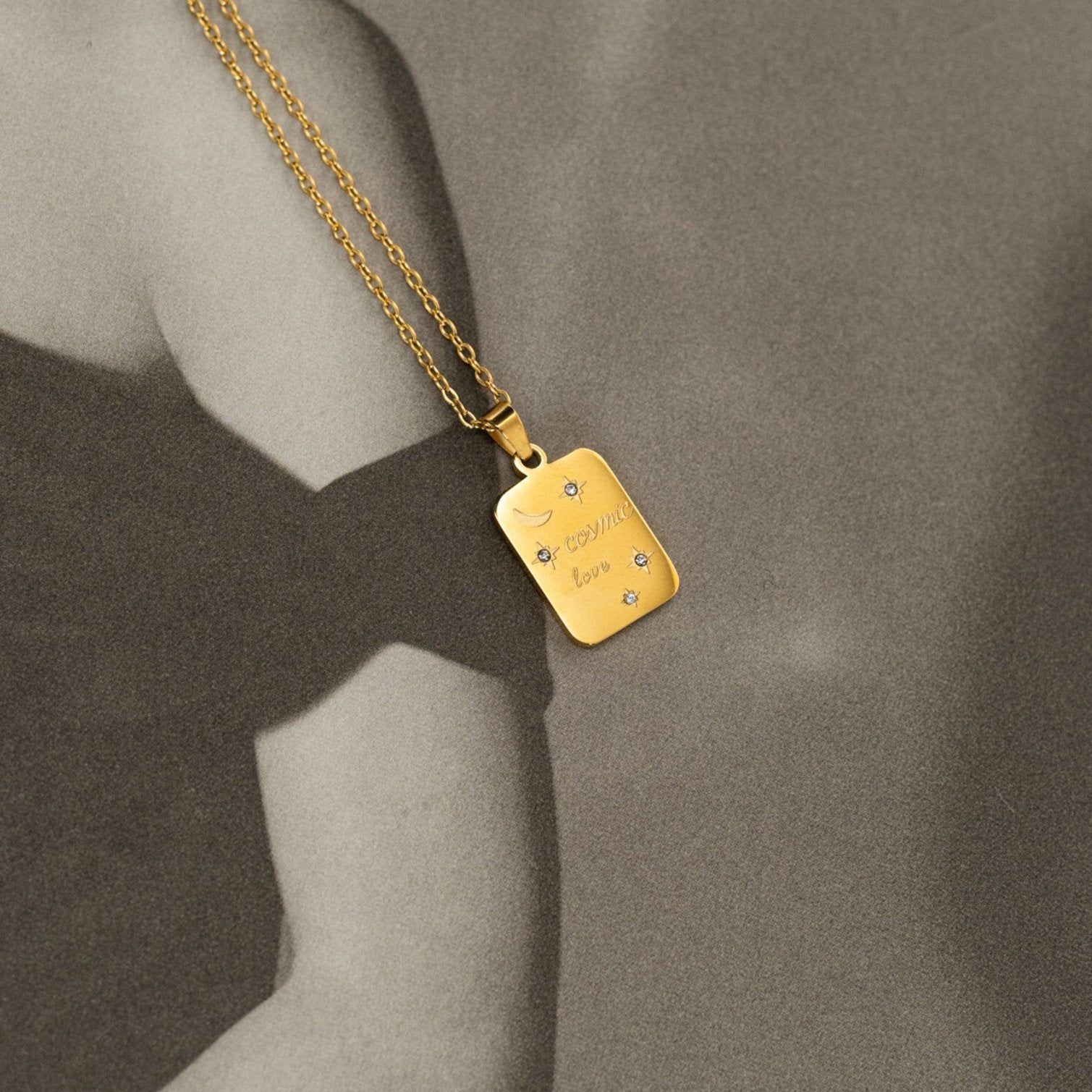 Inspired by Taylor Swift's "Down Bad," our Cosmic Love Necklace captures the essence of a love that transcends the ordinary. Crafted from 18k gold-plated stainless steel, it's available in gold and silver. Let it be a reminder of your enduring love.