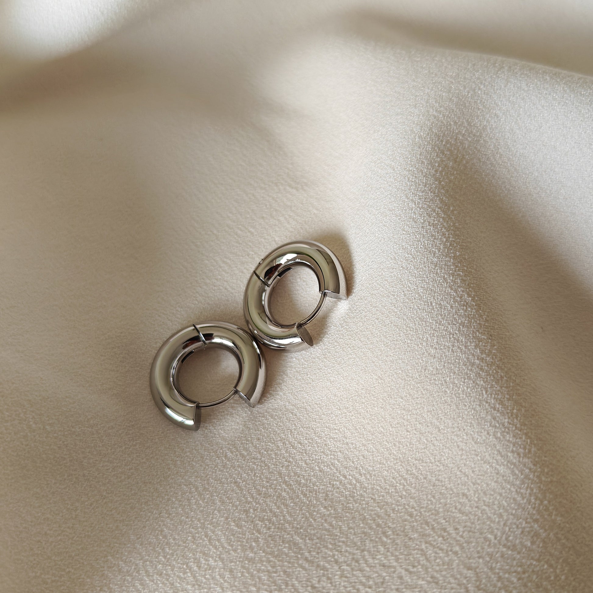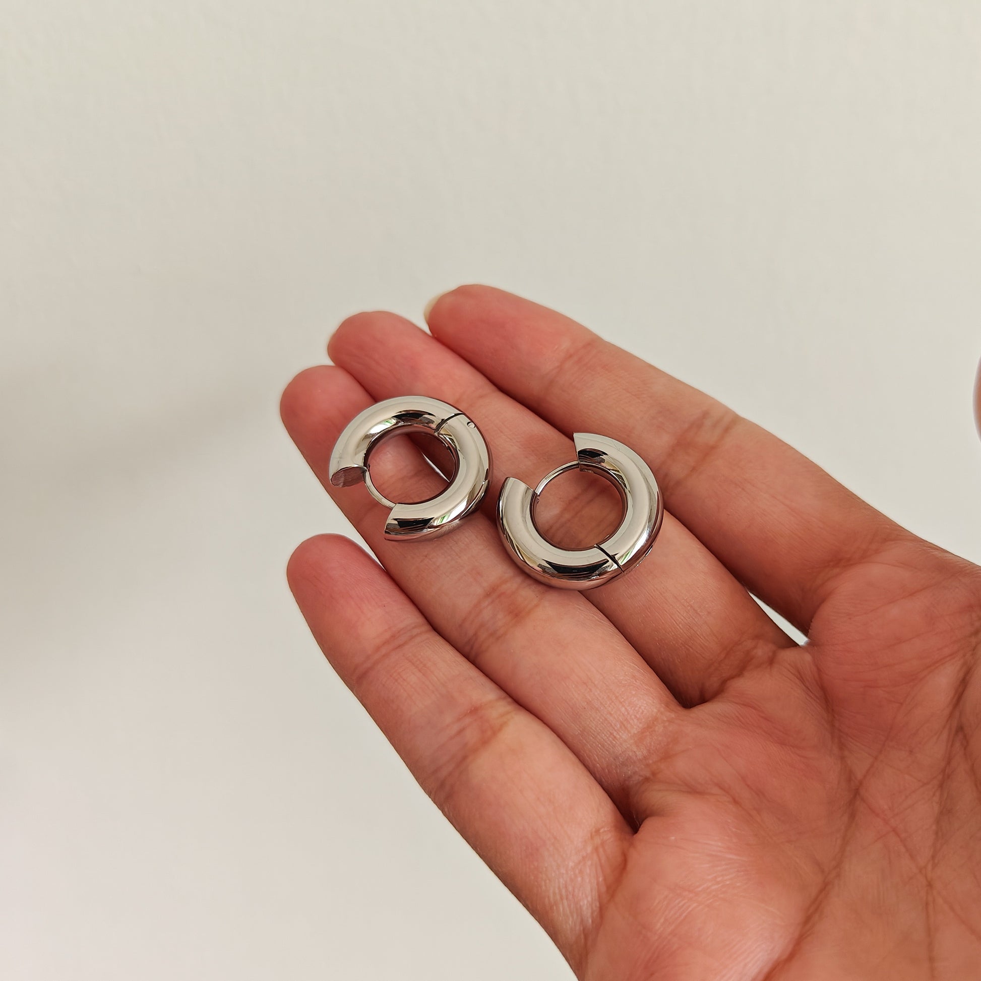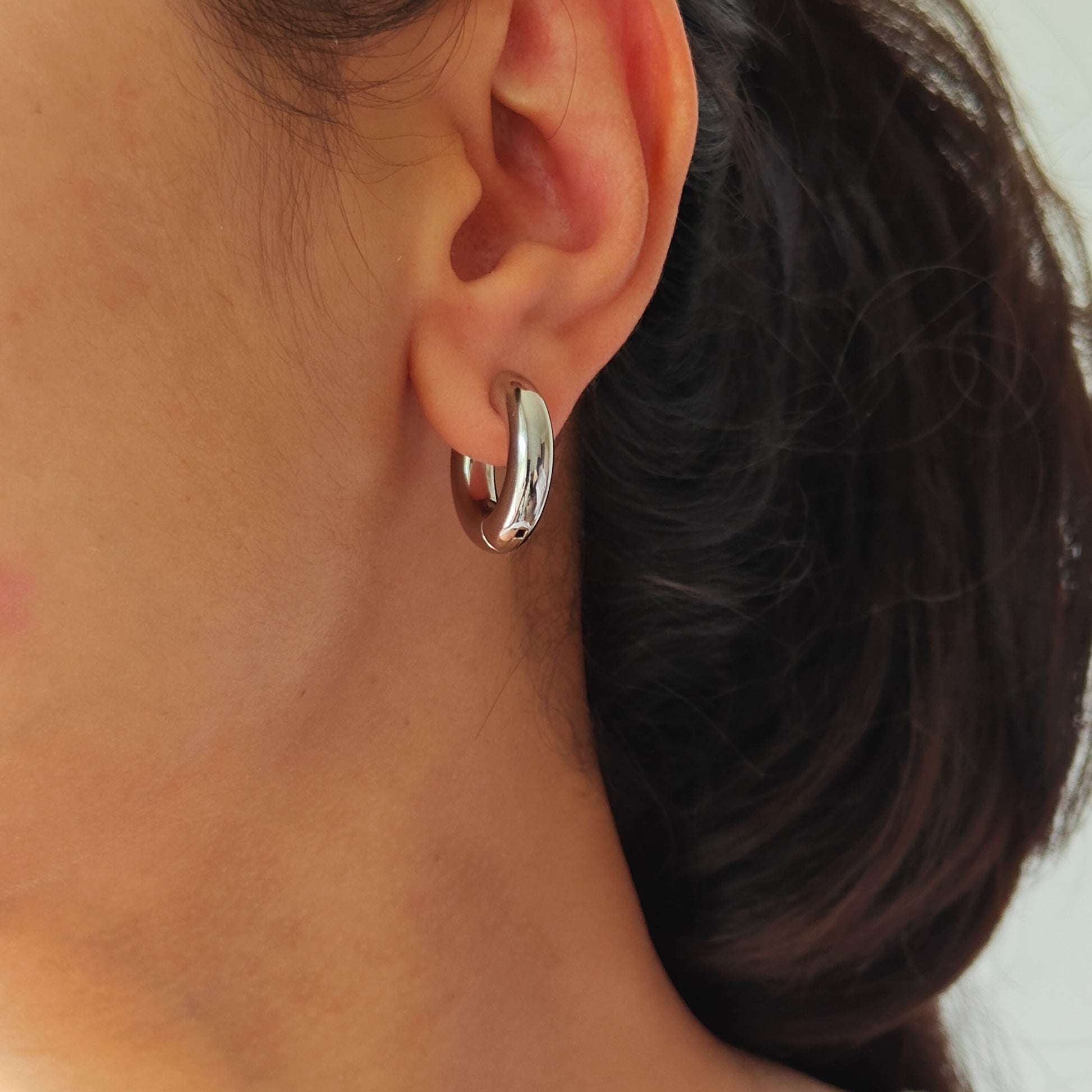 Add instant glam to any look with our Essential Huggies- Silver! These everyday hoops will be your go-to for any occasion, with their metallic shine guaranteed to turn heads. Perfect for adding just the right amount of sparkle to your style! (And they look great with everything!)
