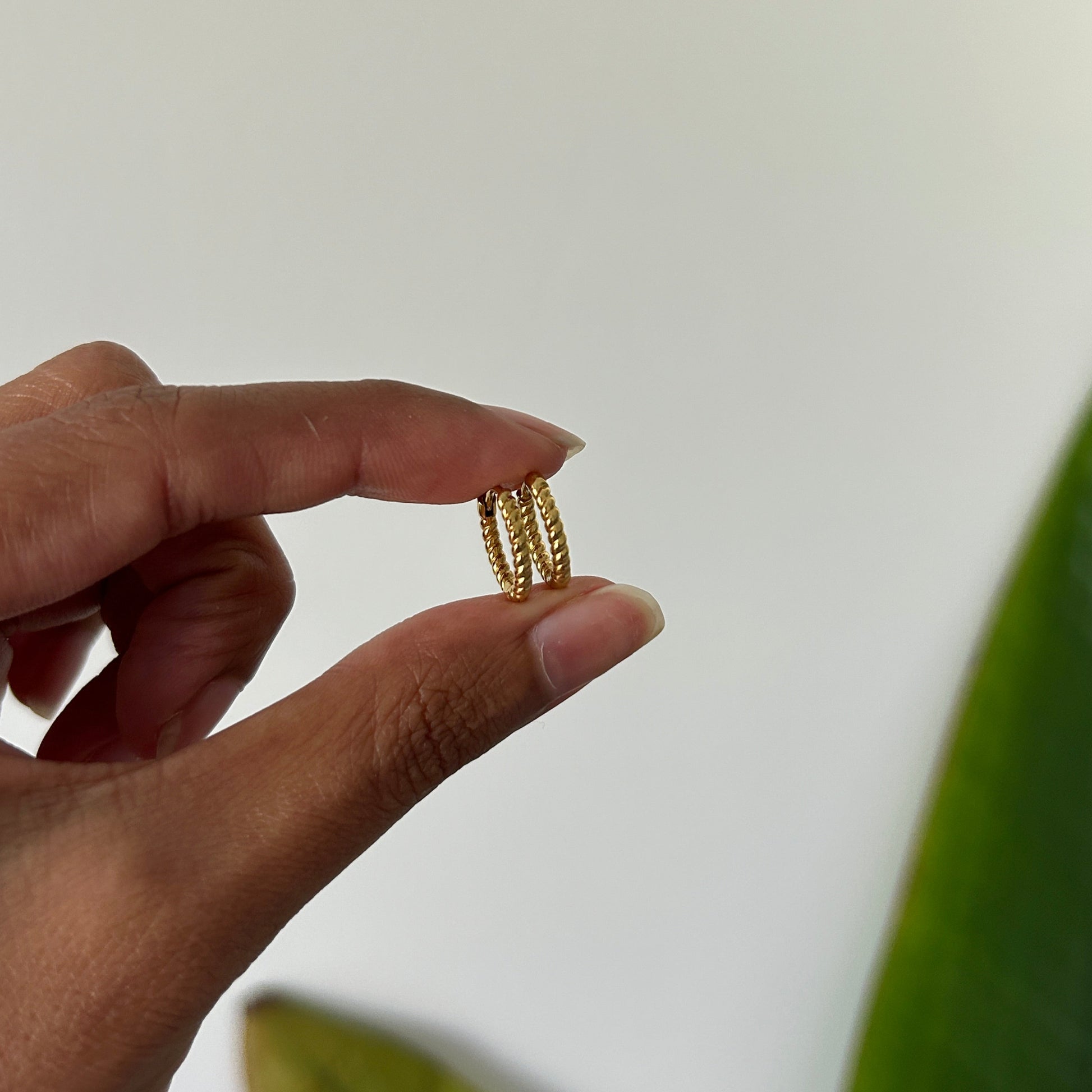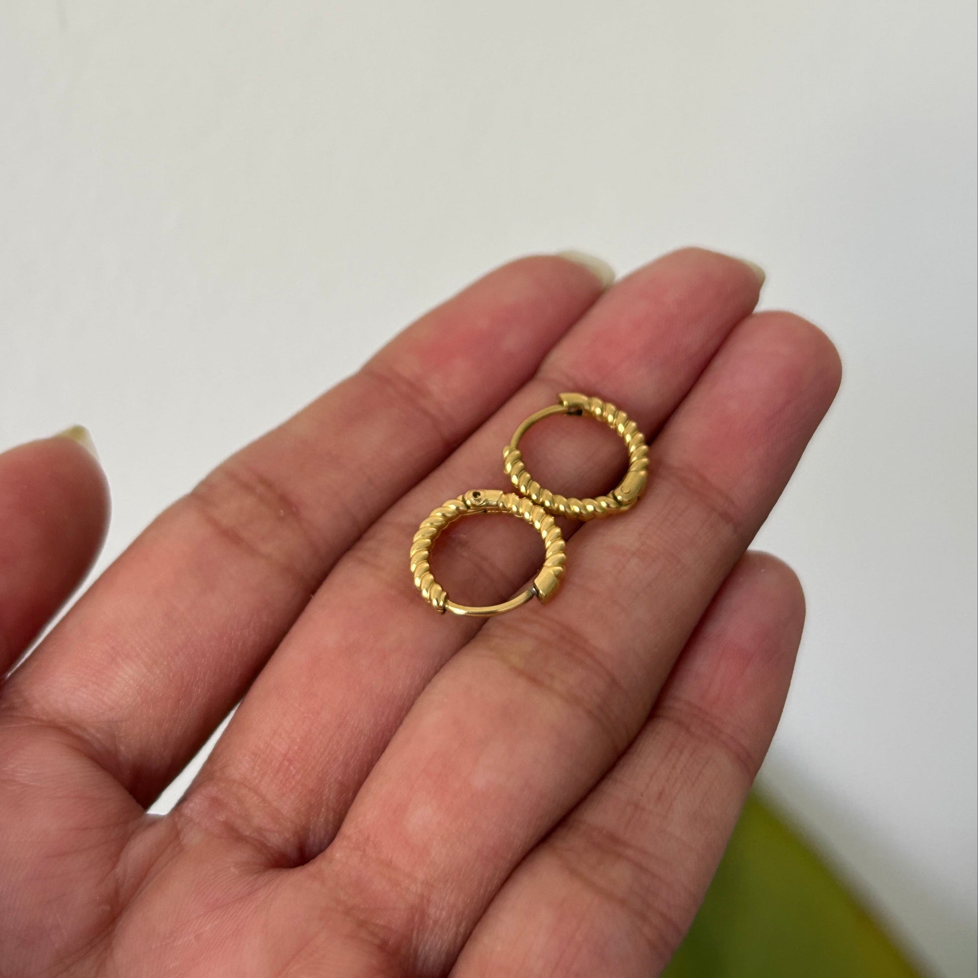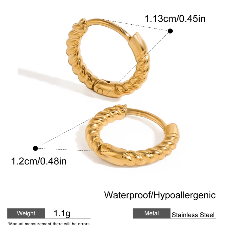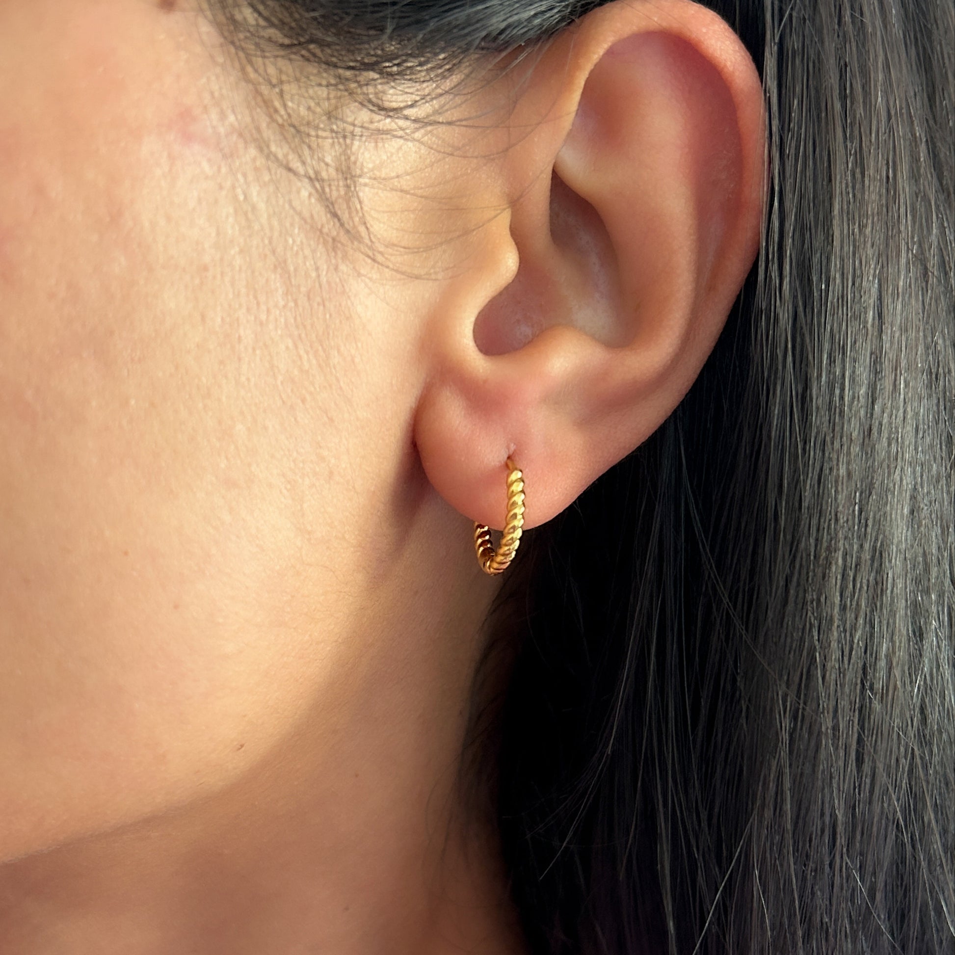 Meet your new everyday essential: Everyday Twist Huggies. Comfort and durability collide in these must-have earrings that hug your ears with ease. No more sacrificing style for comfort - we've got you covered (or hugged) with these essential hoops.