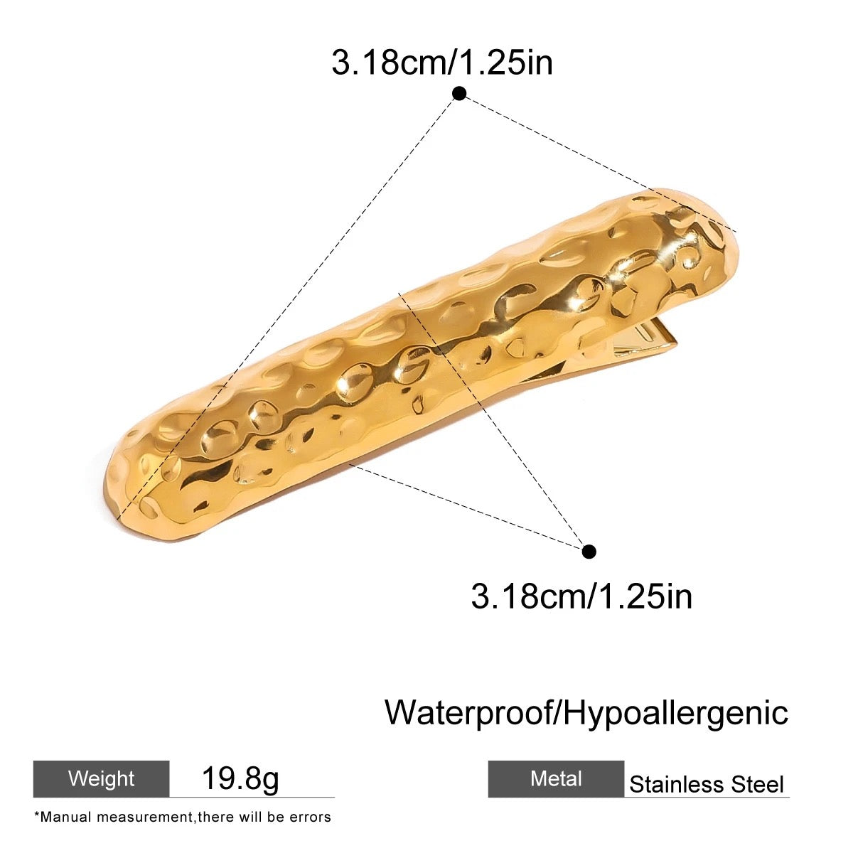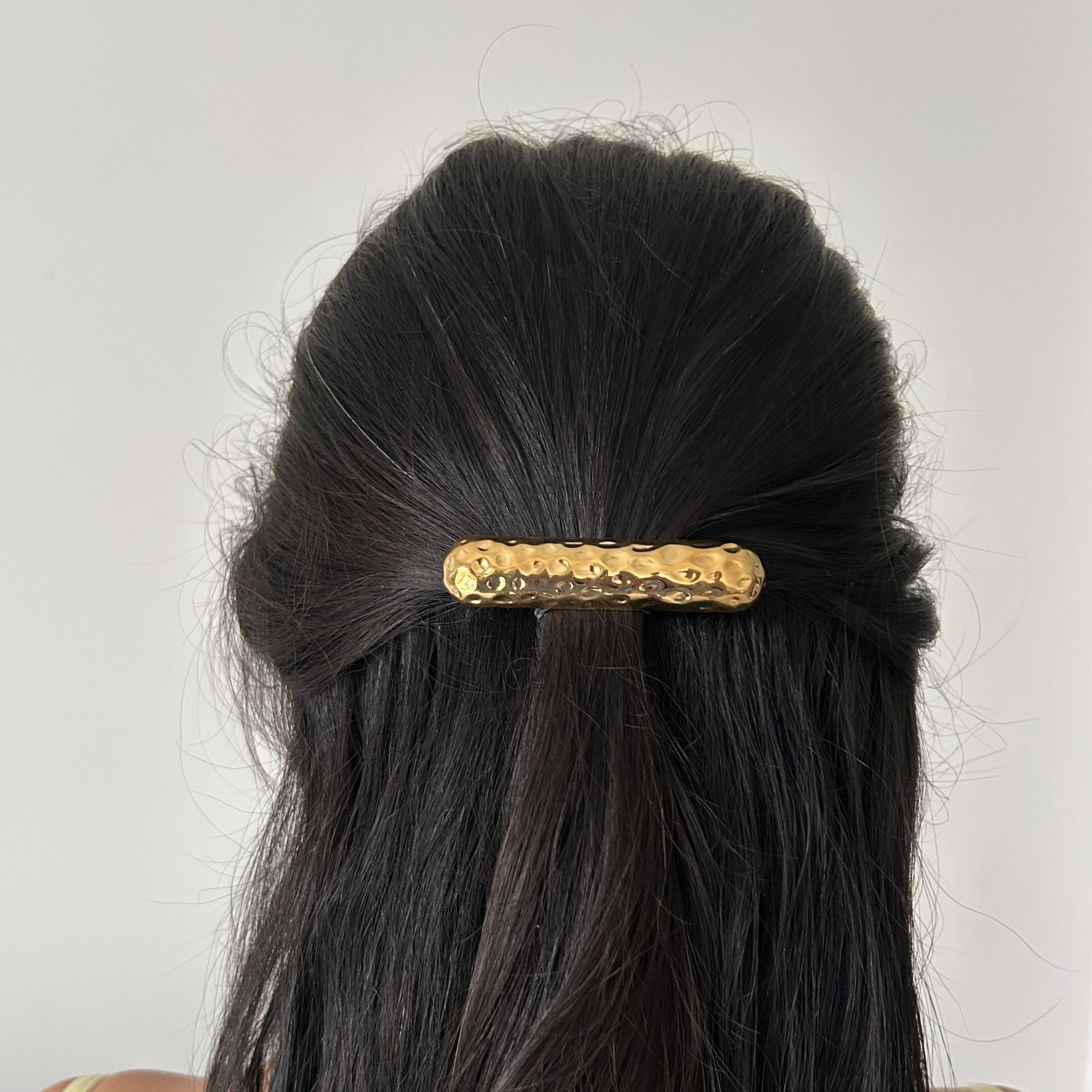 The Hammered Clip is a functional hair accessory designed to hold hair out of the way while styling. Made with a crocodile clip design, it is sure to add a glamorous appeal to your hair style.