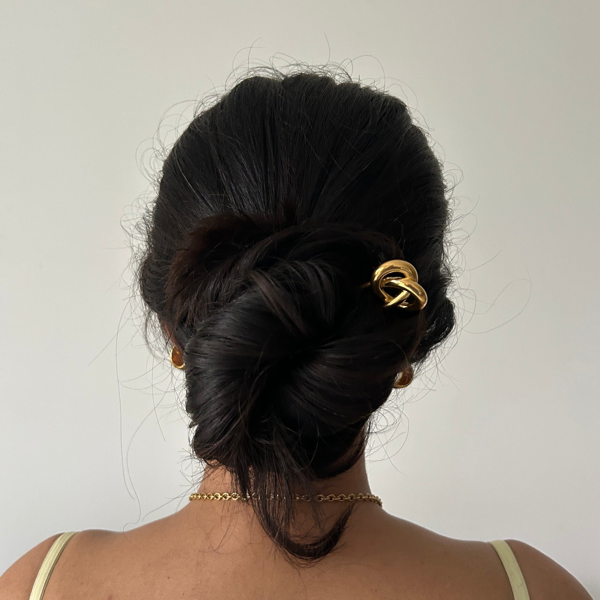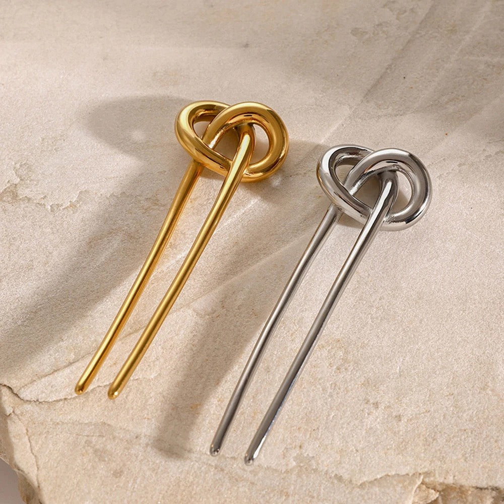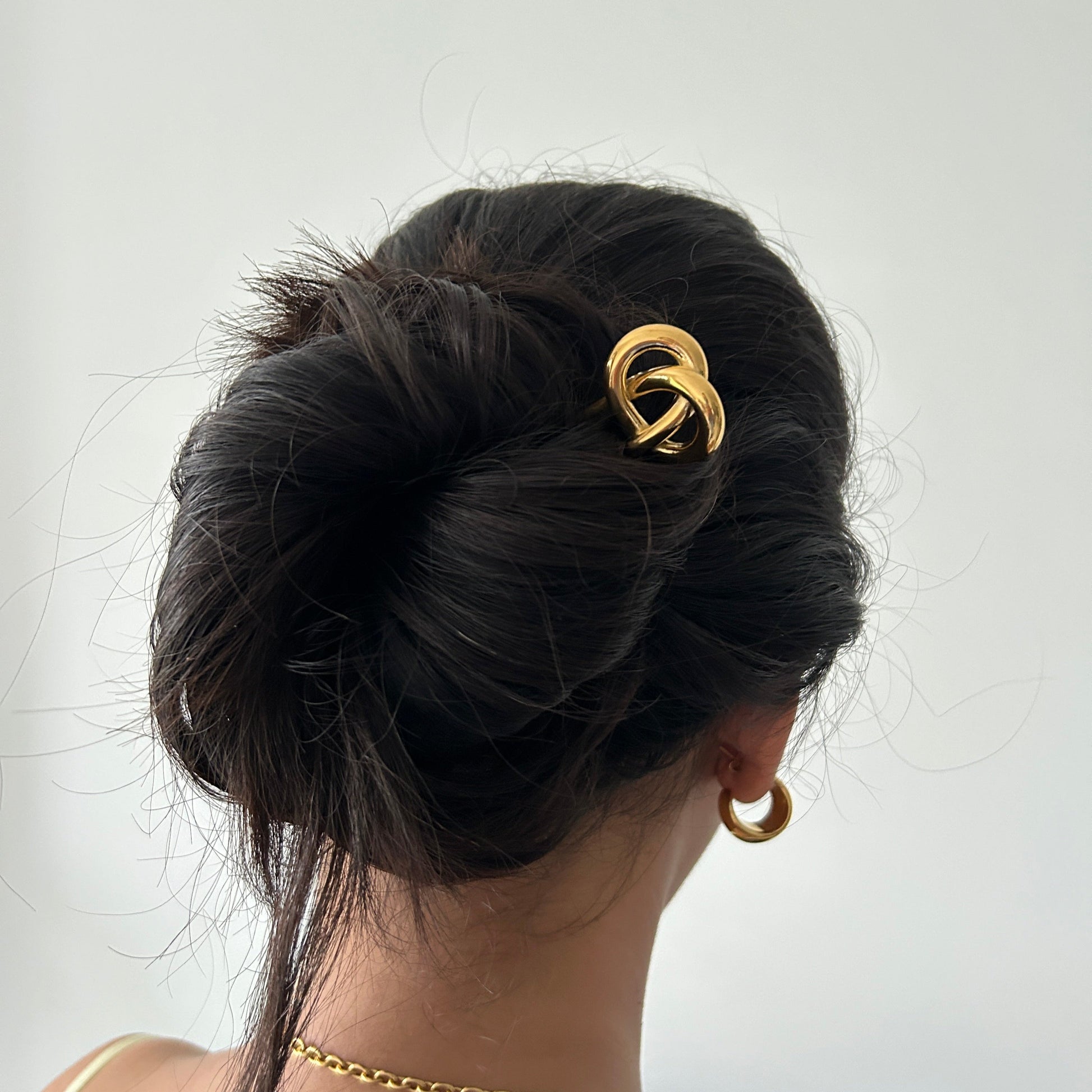 Introducing our new Knot Hair Pin, perfect for adding a touch of modern elegance to your updos. With its chic design, this hair pin will help you stand out from the crowd and add the perfect finishing touch to any hairstyle. Elevate your style with this modern twist on classic elegance.