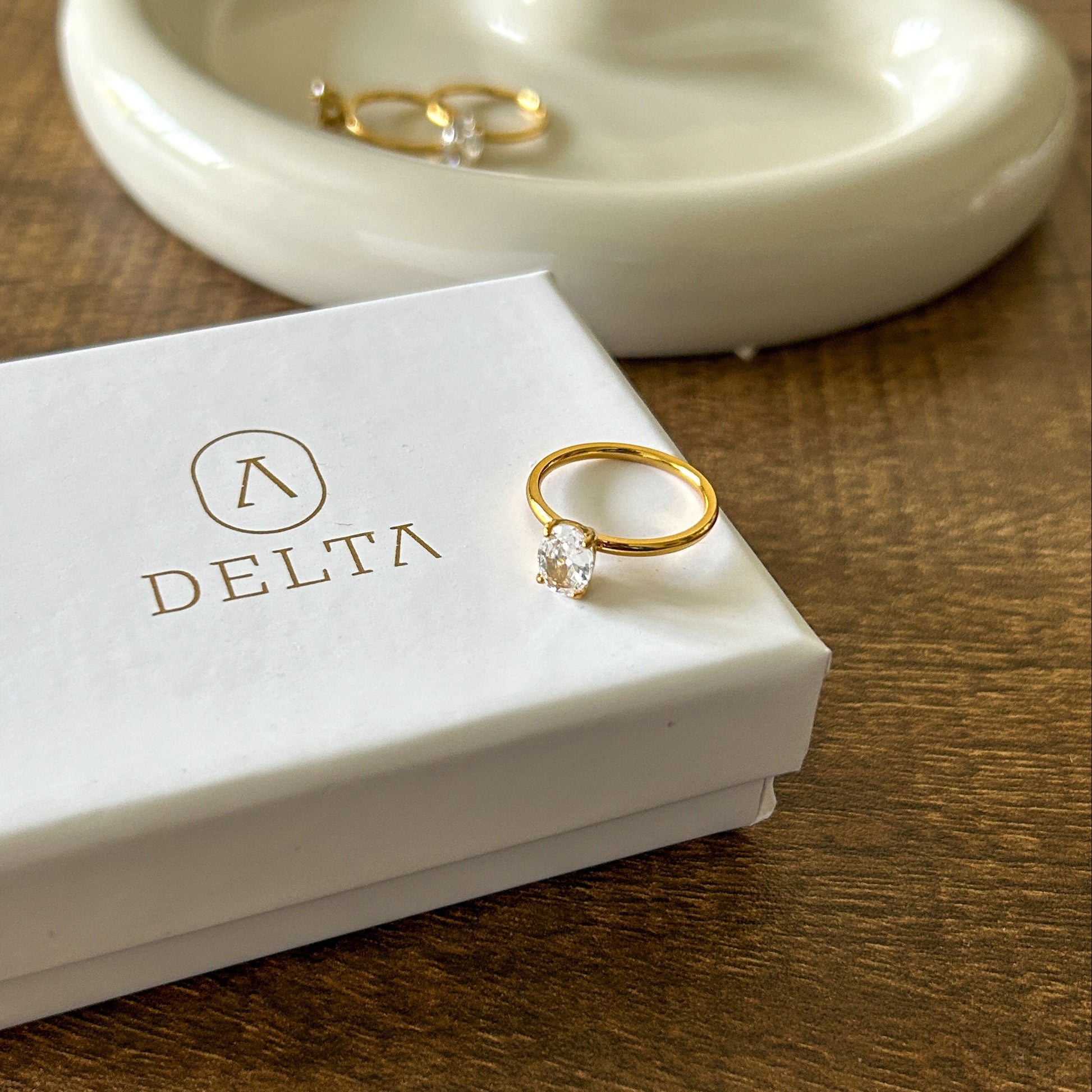 This classic solitaire ring is a must-have for any collection. Made with 18k gold plated stainless steel and high grade sparkling zircon, it adds a touch of elegance to any outfit. With its timeless design, this ring is perfect for everyday wear or special occasions. Elevate your style with the Oval Solitaire.