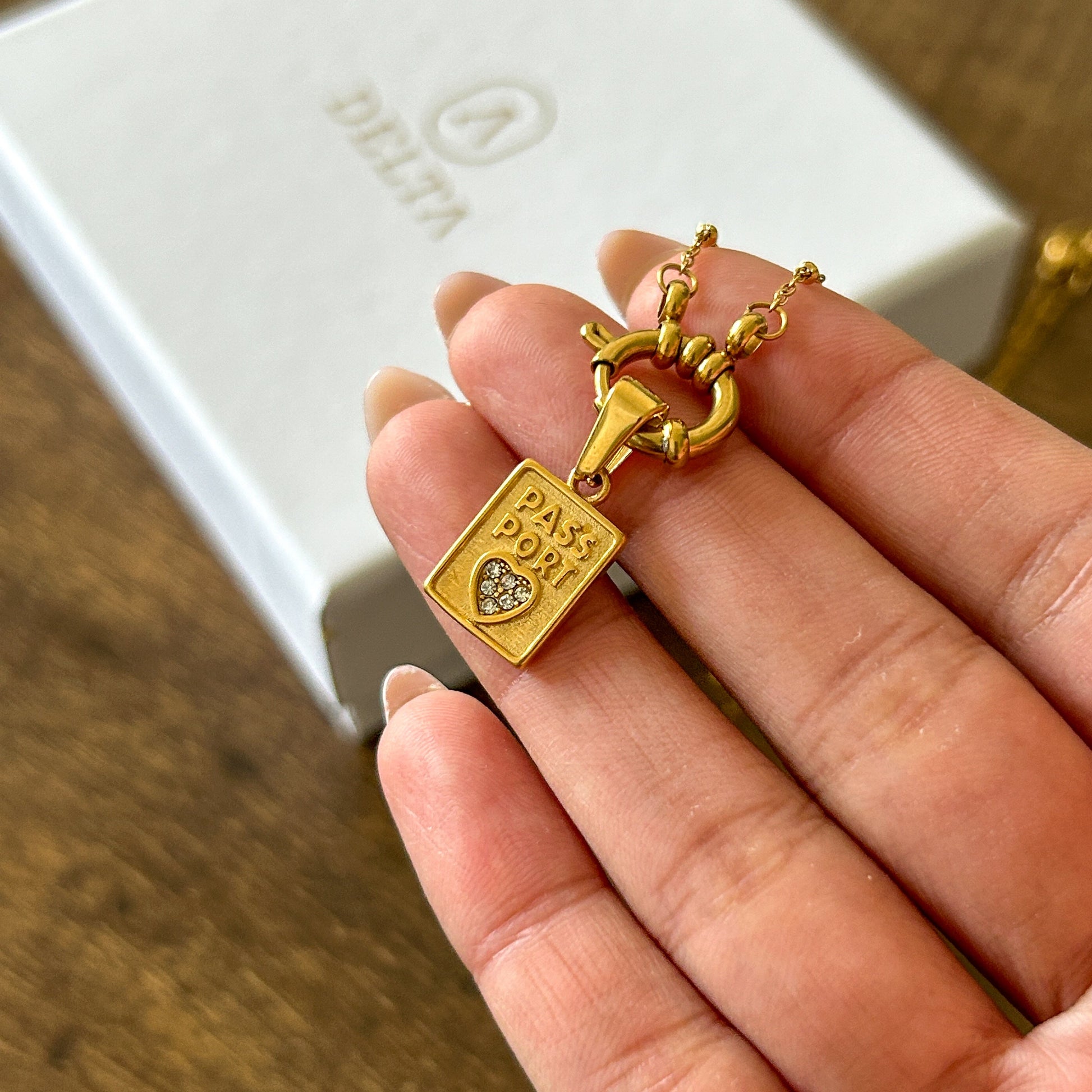 A tiny travel-inspired passport charm — perfect for wanderlust lovers who want to add a hint of adventure to their MYO pieces.