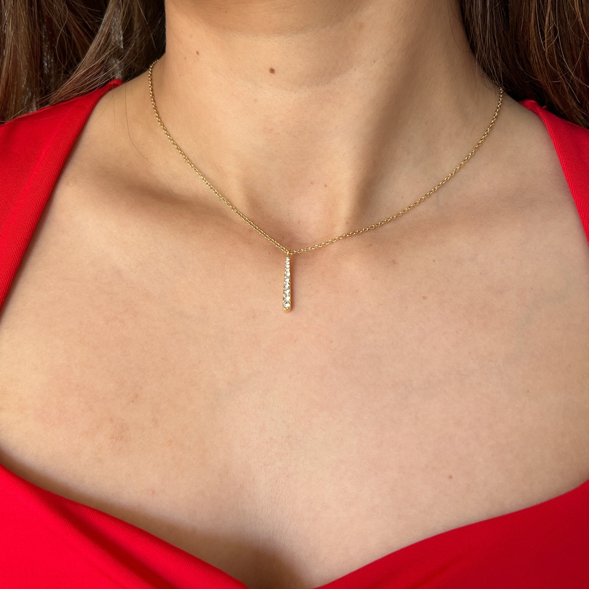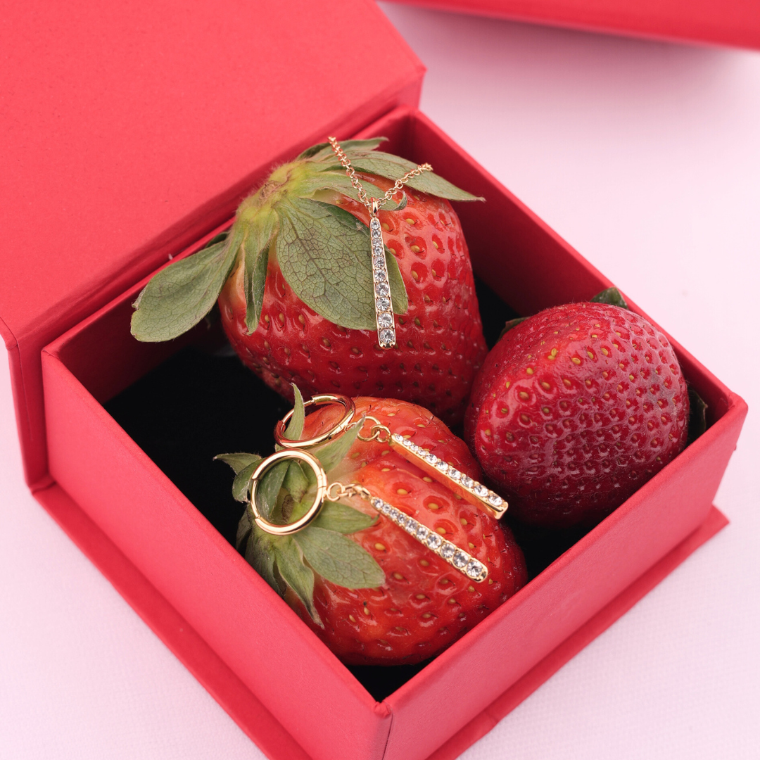 Straight-line zircon accents define this refined necklace and earring set, reflecting a modern, minimalist aesthetic with a polished sparkle for effortless everyday wear.
