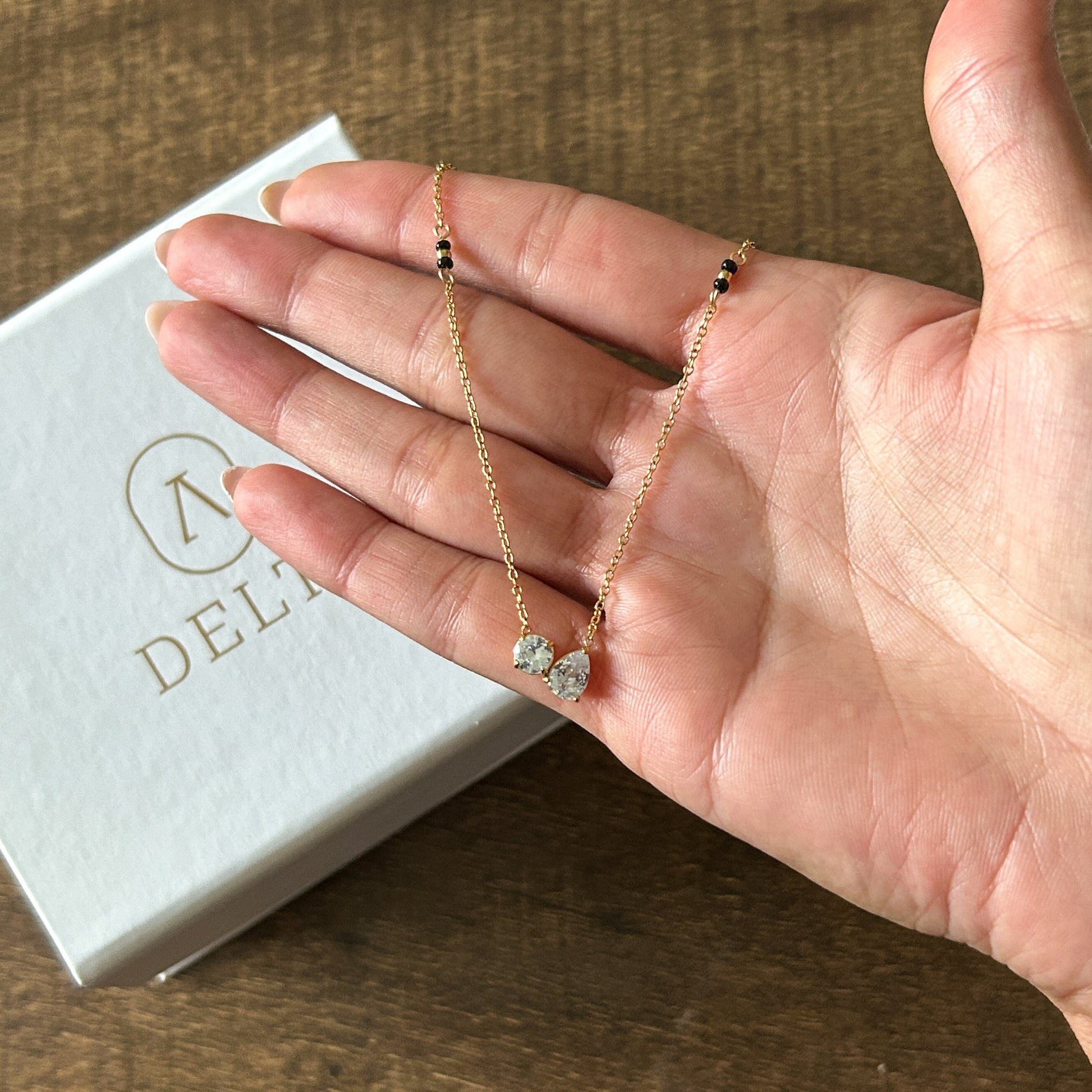 Introducing our first-ever mangalsutra, designed for the modern woman. Sacred Bonds blends tradition with minimal elegance — crafted to complement your workwear, everyday outfits, and subtle festive looks. Made with highest-grade zircons and durable stainless steel, it’s a piece you can wear daily with pride, comfort, and timeless style.