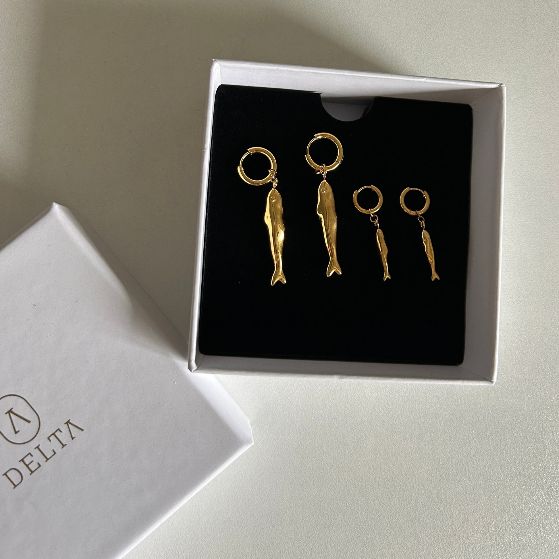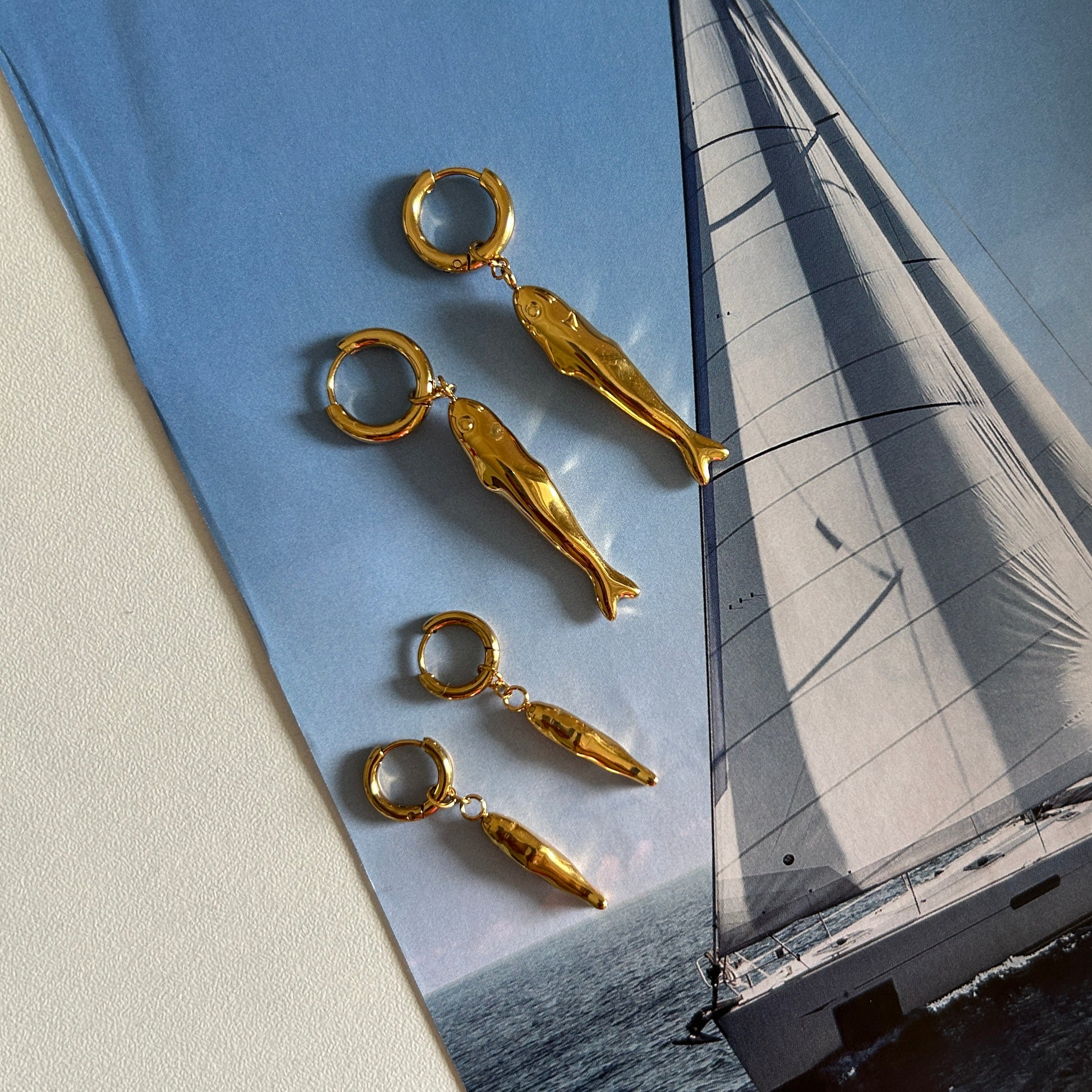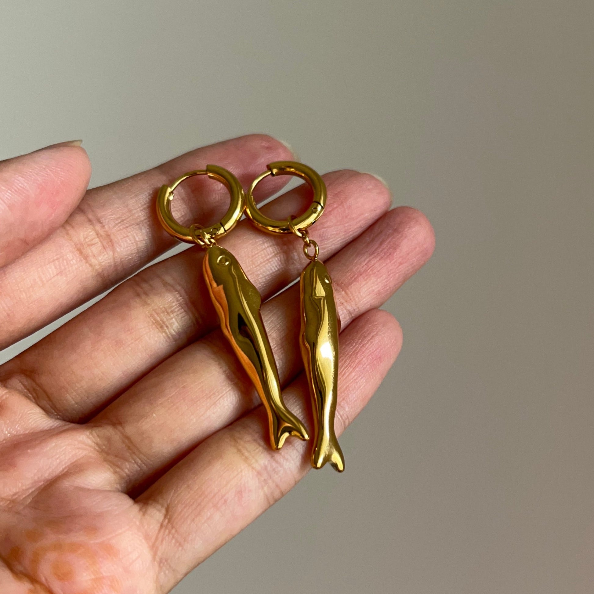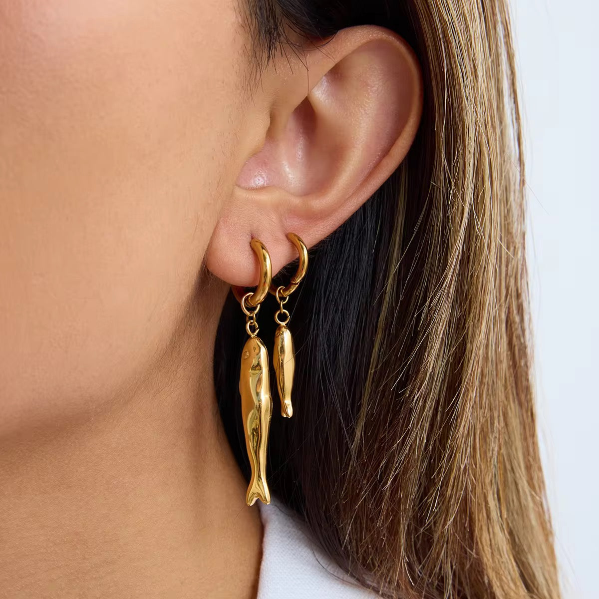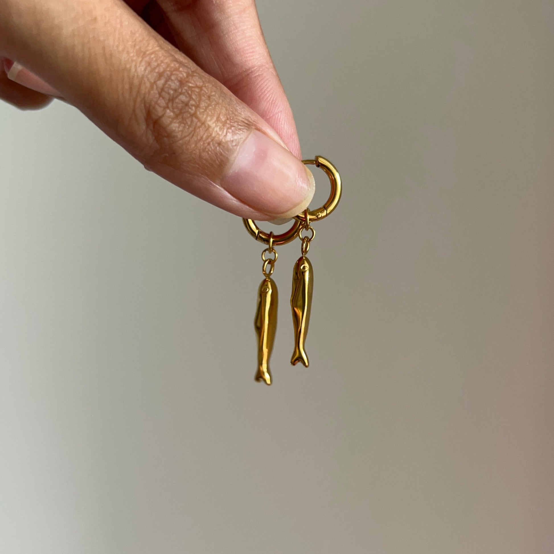 A quirky-cool pair featuring detailed sardine charms- playful yet polished, perfect for adding a touch of whimsy to your ear stack.