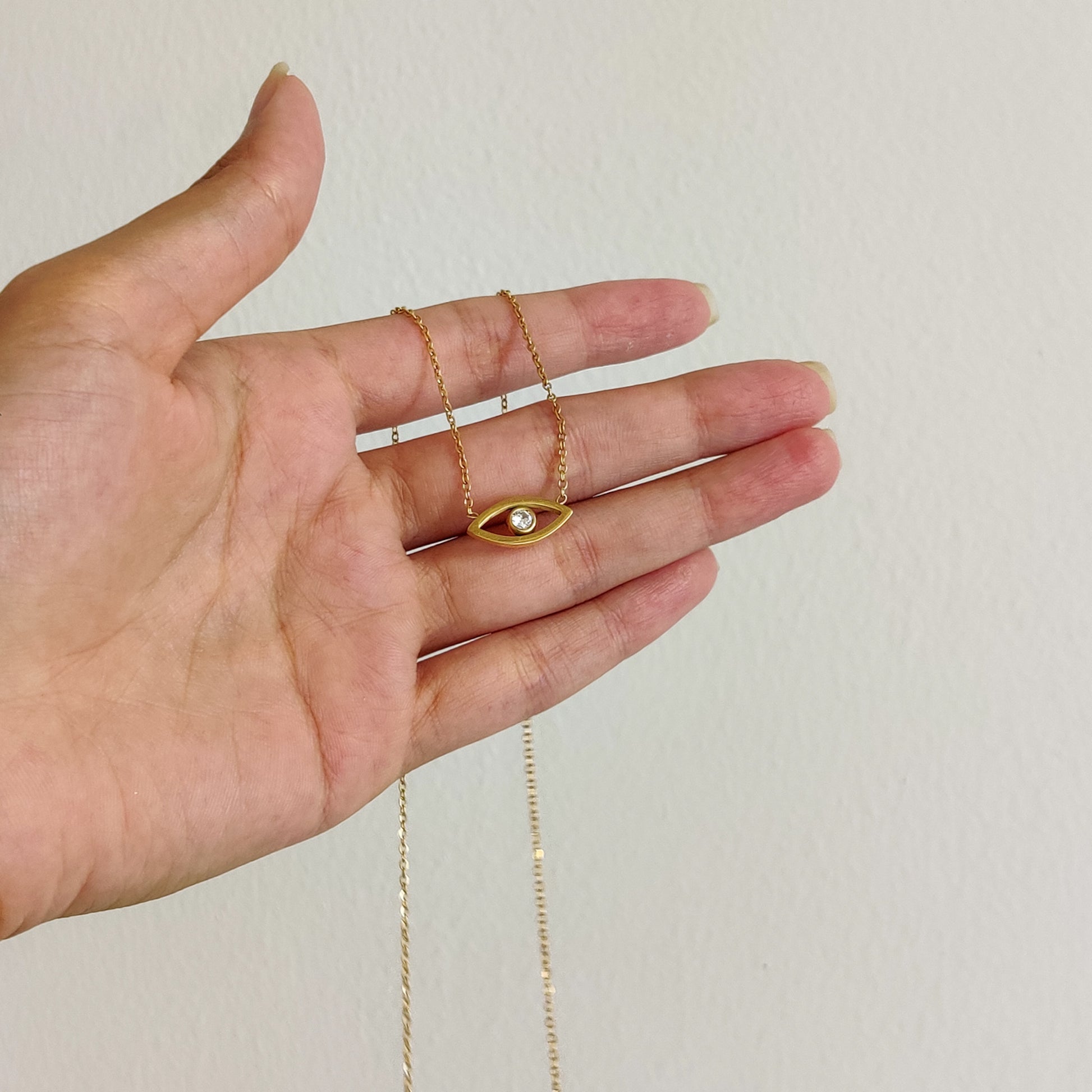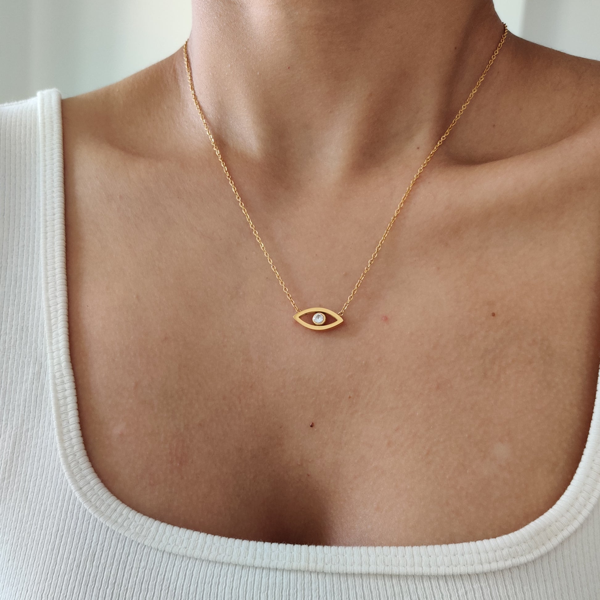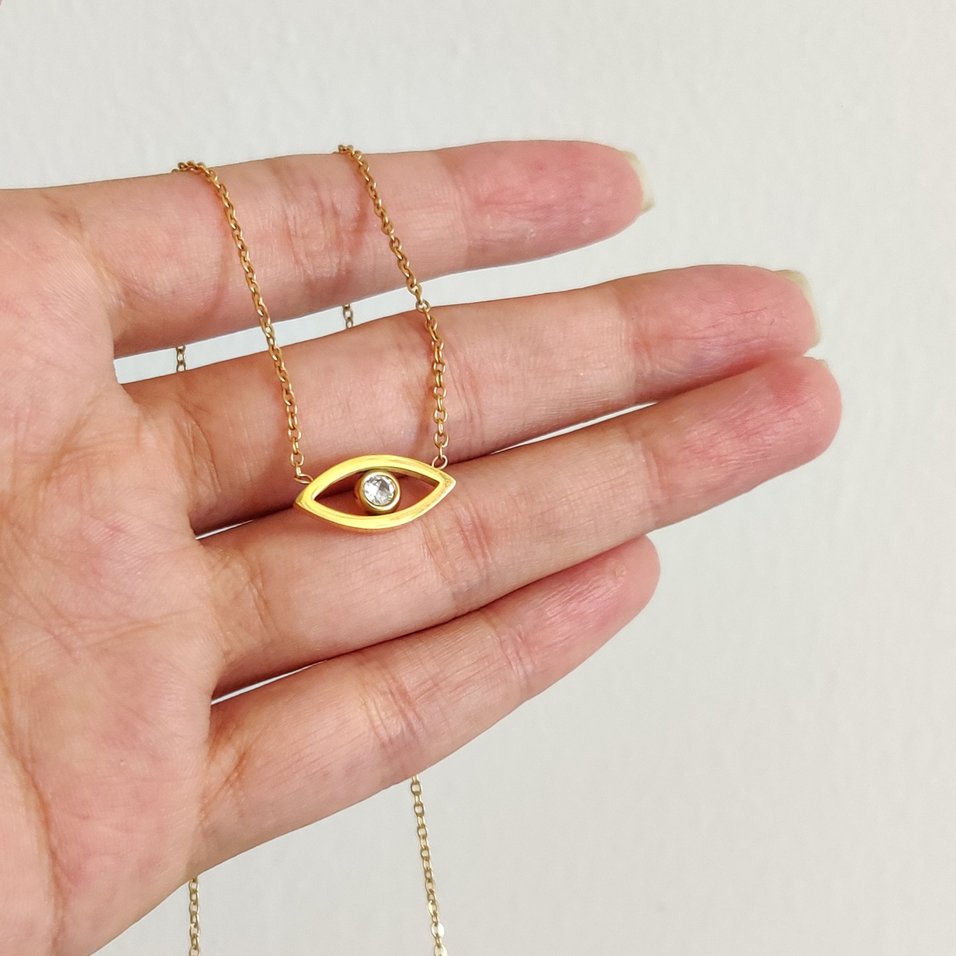 This Shield Necklace is the perfect necklace for everyday wear. It is crafted with 18k gold plating on stainless steel that ensures its waterproof, non-tarnish, and skin-friendly features. The minimal design exudes the essence of Delta Charms, offering you an exciting twist on traditional evil eye jewellery. Add this to your collection and stand out from the crowd!