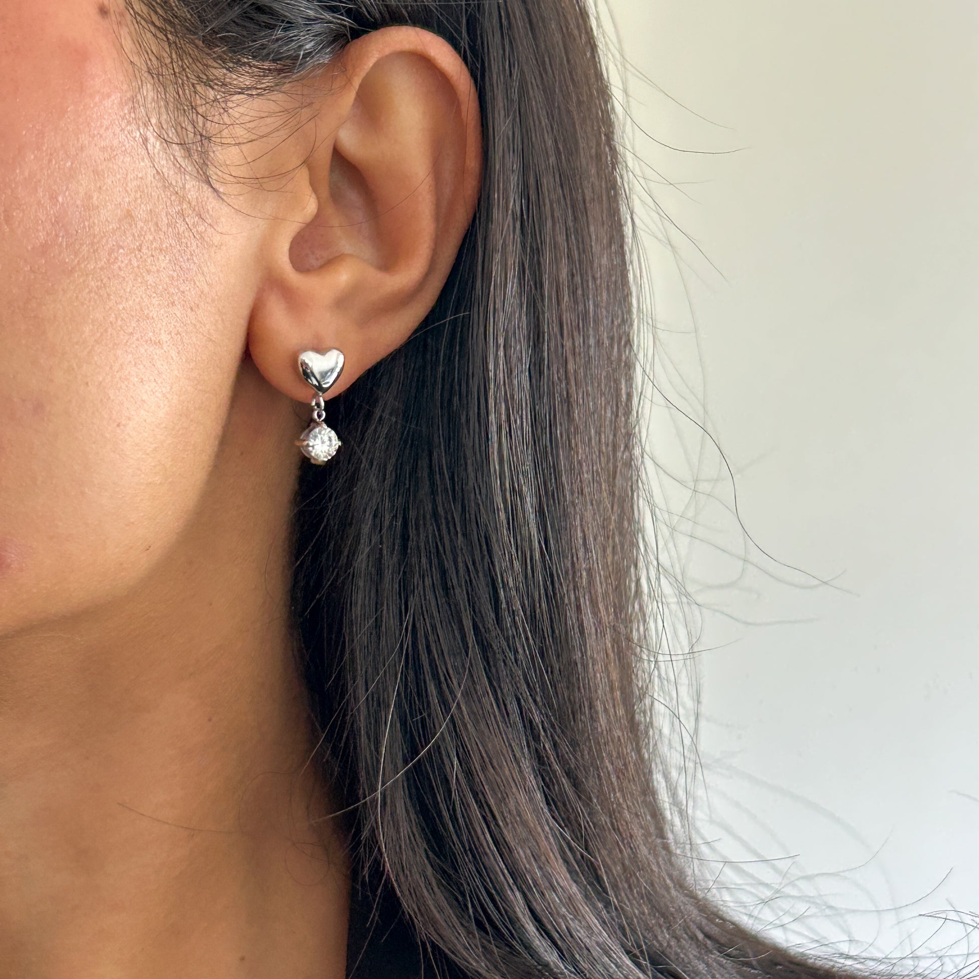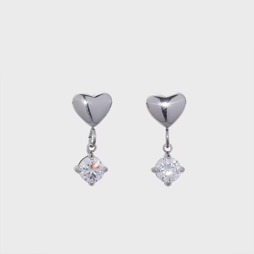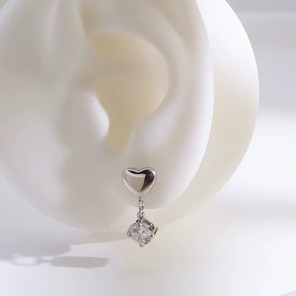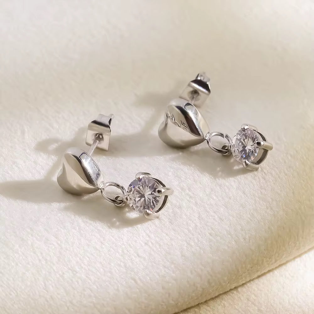 A sleek stainless-steel heart with a dangling zircon for subtle shine — perfect for silver lovers who want an elegant everyday drop.
