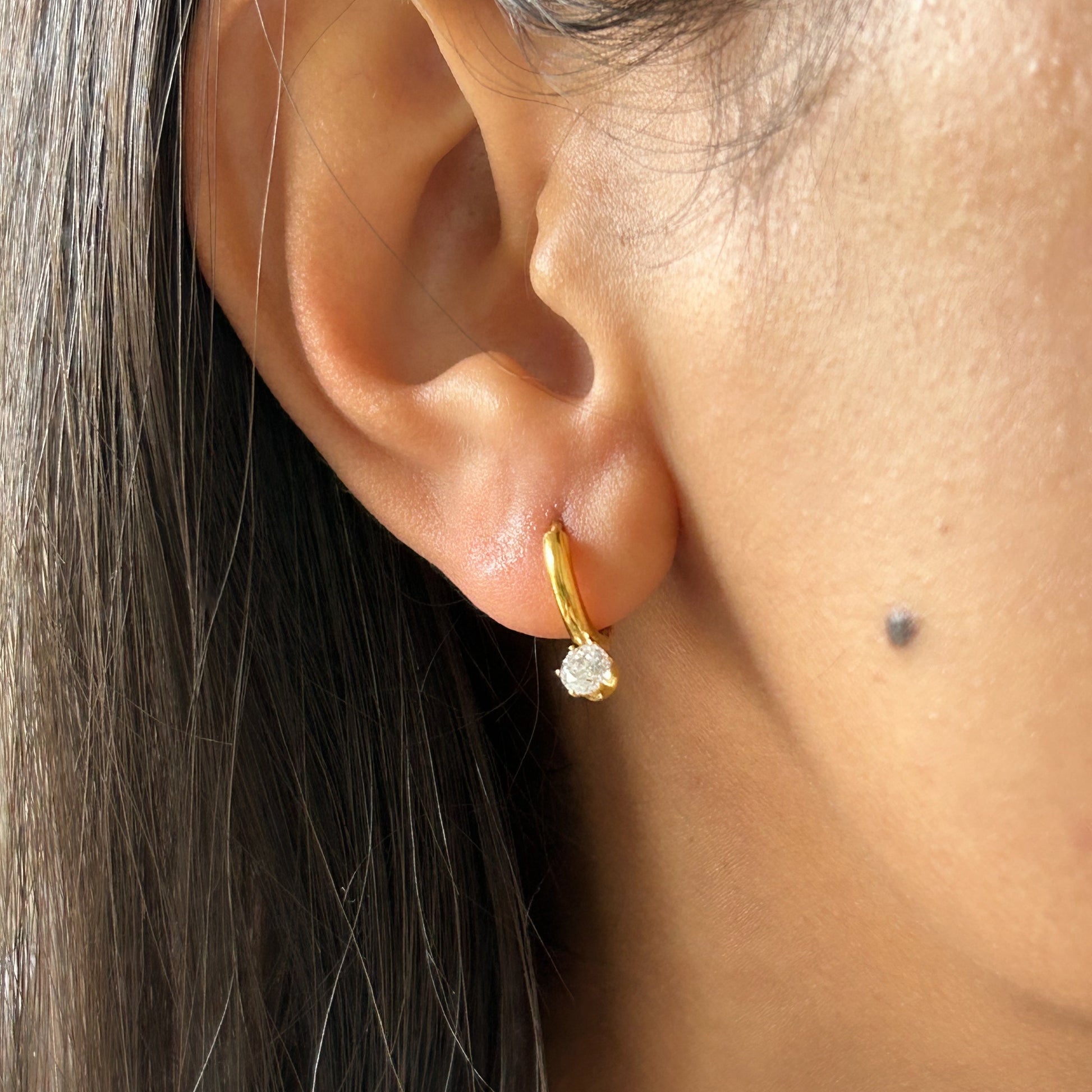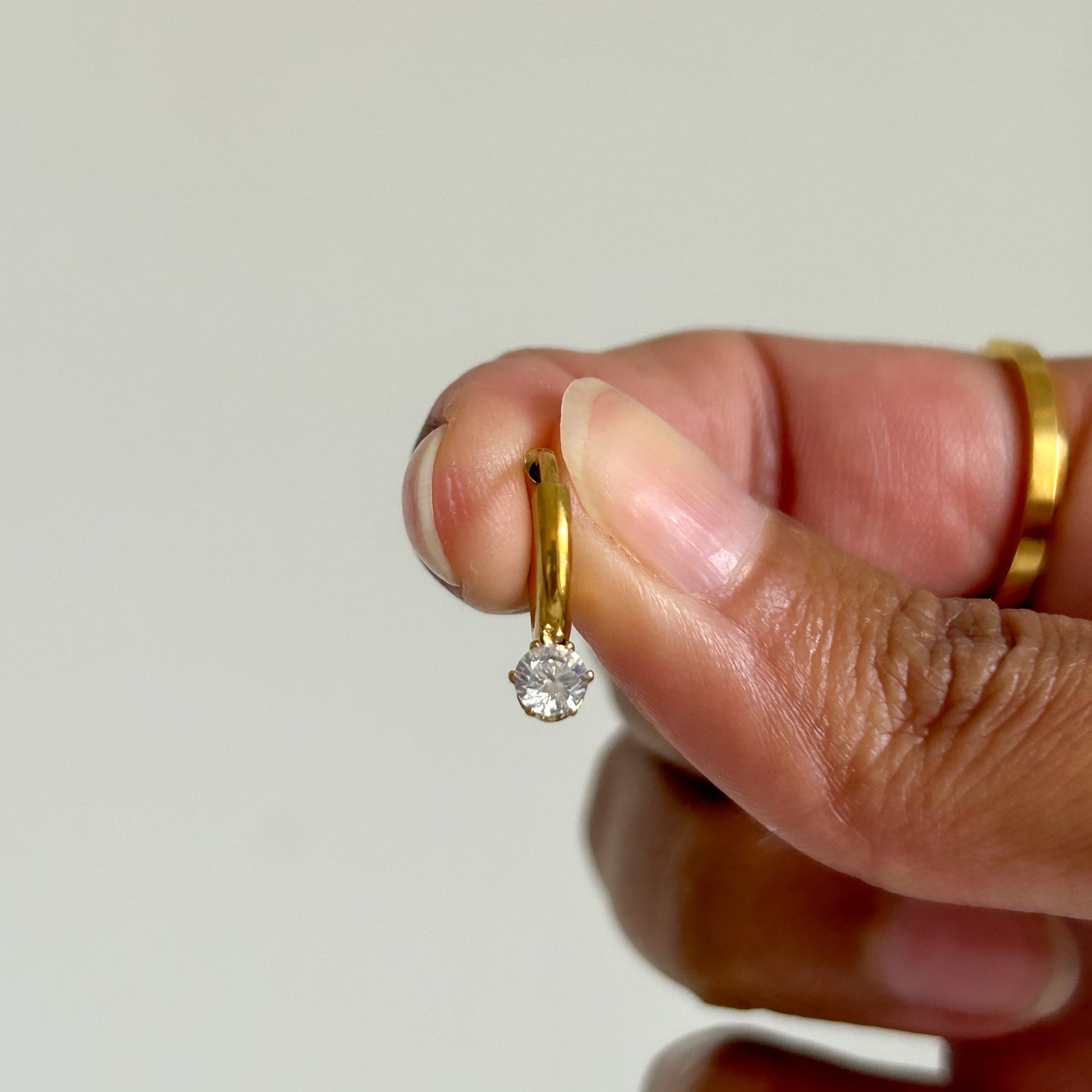 Add some sparkle to your everyday look with our Single Stone Huggies. These tiny huggies feature a single zircon stone suspended at the bottom for a touch of everyday minimal chic.