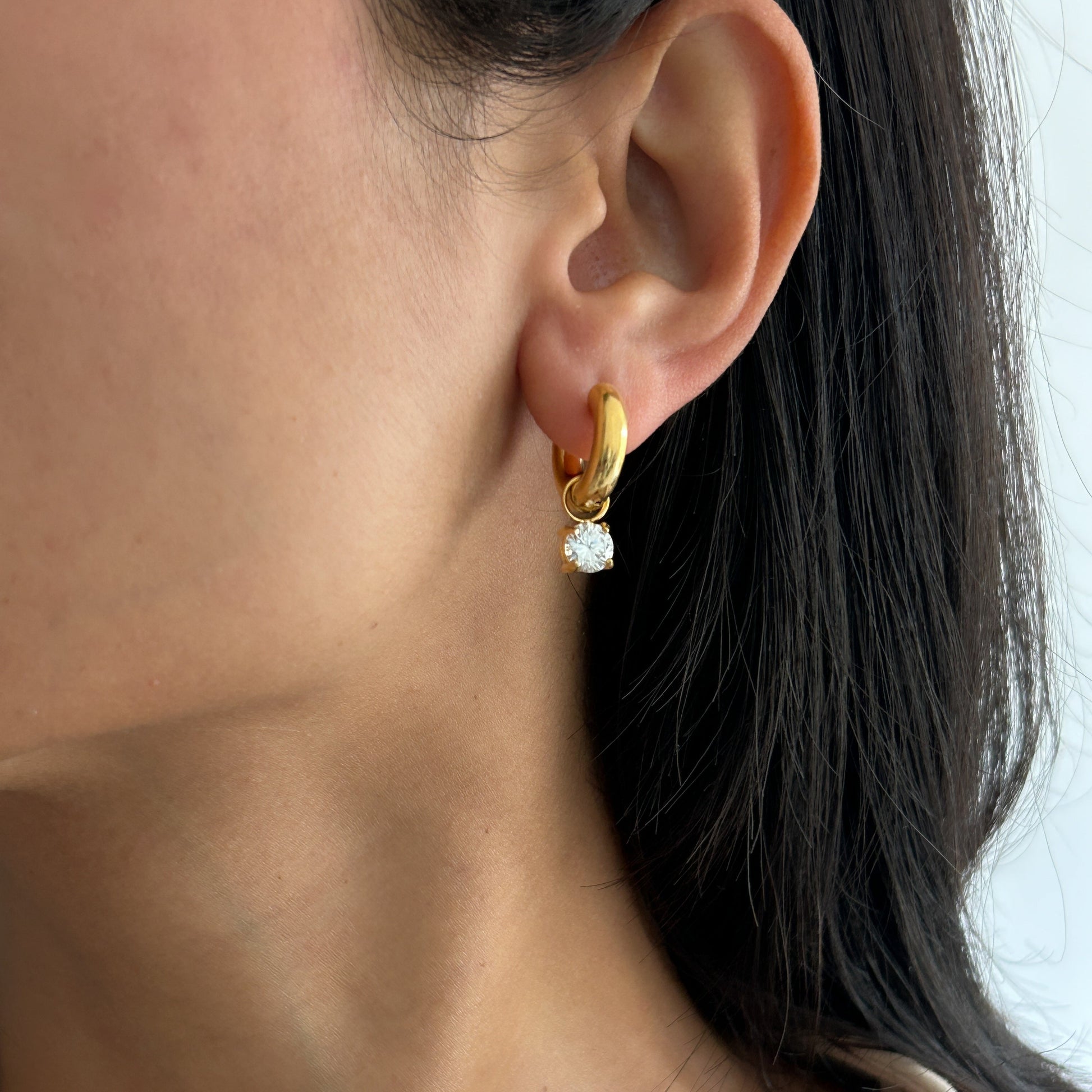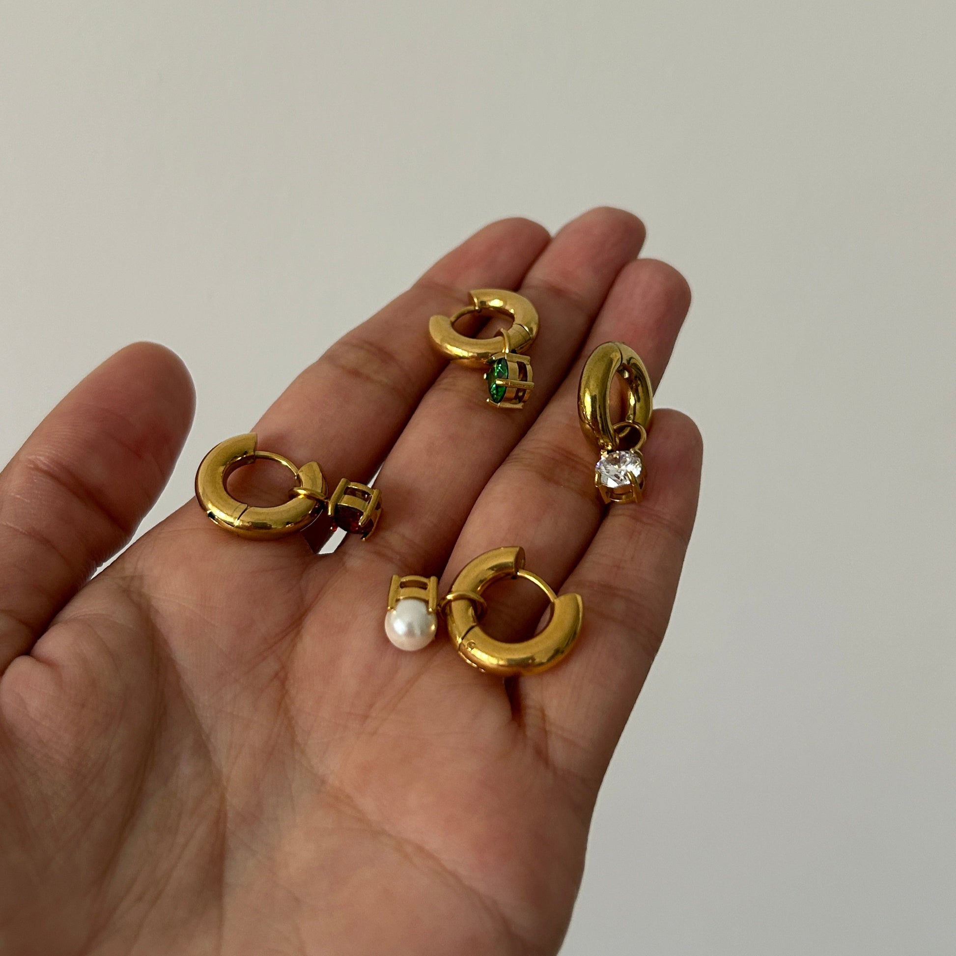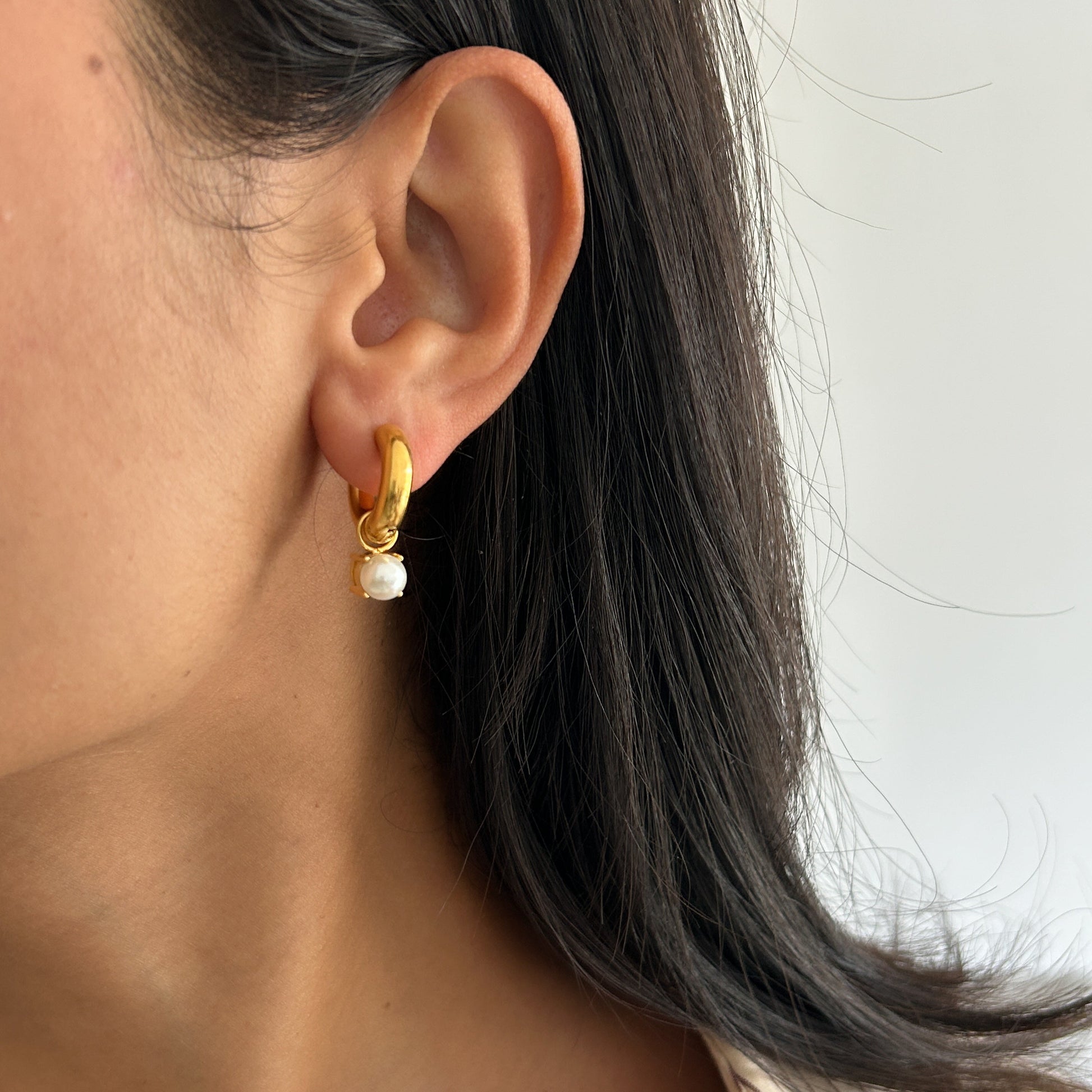 Introducing Starlight Huggies, the 4mm thick huggie earrings that will elevate your everyday look. Featuring removable cubic zirconia and pearl charms, these elegant earrings are a must-have for everyone. Upgrade your style game with Starlight Huggies.