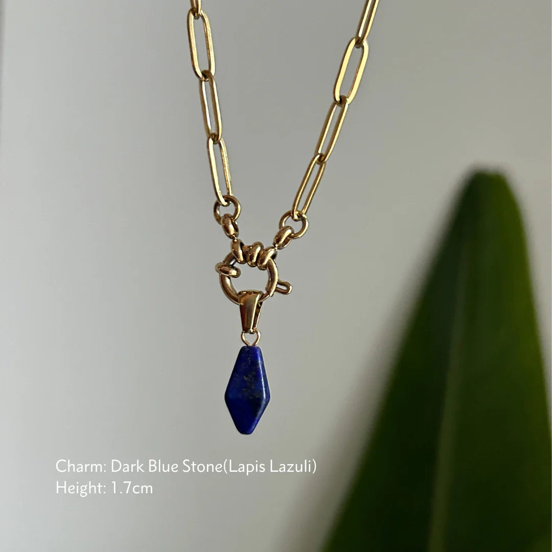 Please note: Lapis Lazuli is a naturally occurring stone, so each charm may vary slightly in color and may feature natural white specks, making every piece unique.