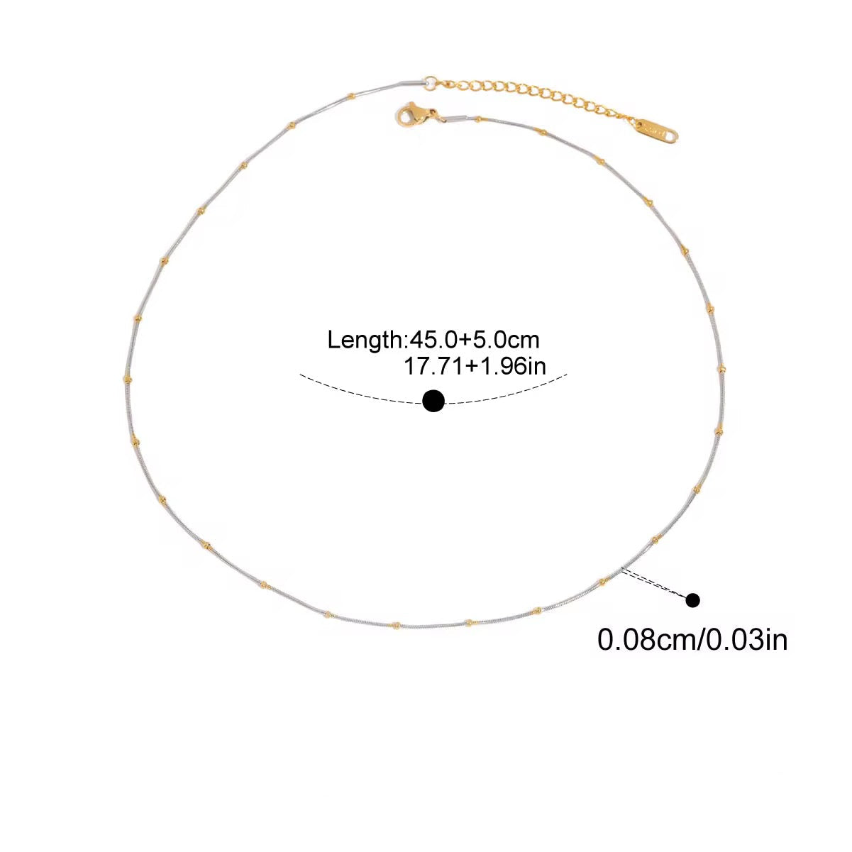 Delicate and ultra-minimal — this slim silver chain features tiny gold dot detailing for the perfect hint of mixed-metal charm. Subtle, elegant, and effortlessly wearable with everything in your everyday rotation.