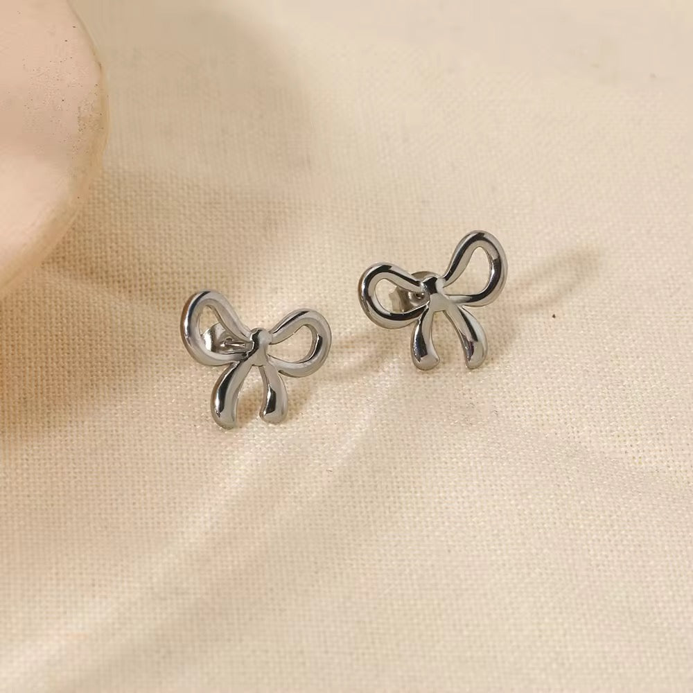 This versatile Bow Set features a stunning 18k gold plated stainless steel bow stud and bow chain in both silver and gold finishes. Elevate any outfit by wearing them alone or as a stylish set. Made with high quality materials, this set is perfect for any occasion.
